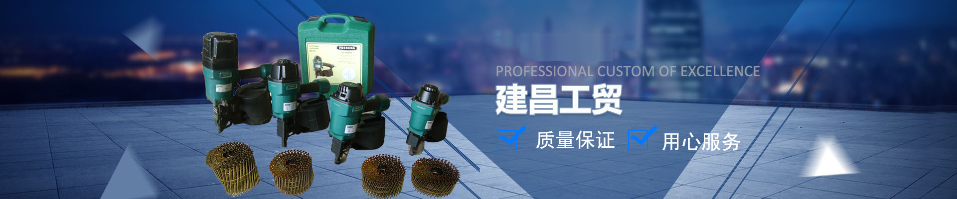 太倉(cāng)建昌工貿(mào)有限公司是一家生產(chǎn)自營(yíng)品牌"羿箭"各類(lèi)工業(yè)用釘?shù)膶?zhuān)業(yè)公司,并且代理銷(xiāo)售眾多知名品牌的氣動(dòng)五金緊固工具(總代理德國(guó)PREBENA、代理 德國(guó)BeA...